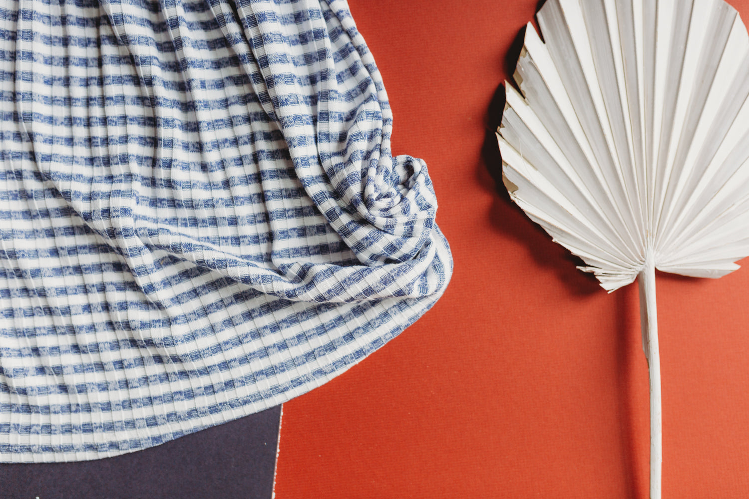 Denim Stripe is a denim and white summer weight sweater rib. This is an open-weave fabric known for being soft, breathable and stretchy.