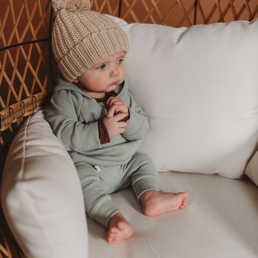 Eucalyptus Rib Skinnies are a light sage rib. These leggings are made in a organic 2x2 rib making them super soft and perfect for babies skin.