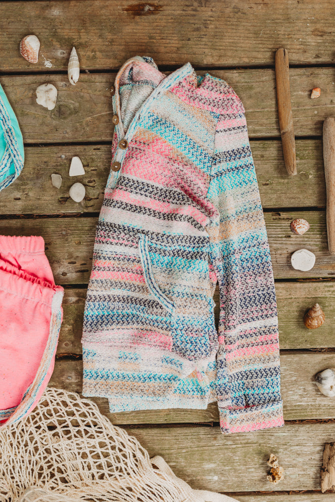 Cut in our Tidal Sweater Knit, this open-weave knit is breathable, cozy, and perfect for when the beach breeze rolls in. The colors are sunwashed but still vibrant, like they’ve spent all day soaking up the light.